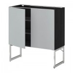 МЕТОД Напол шкаф с полками/2двери - 80x37 см, Веддинге серый, под дерево черный