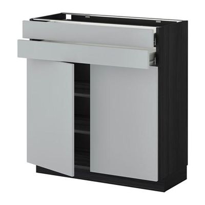 МЕТОД / ФОРВАРА Напольный шкаф/2дверцы/2ящика - Веддинге серый, под дерево черный