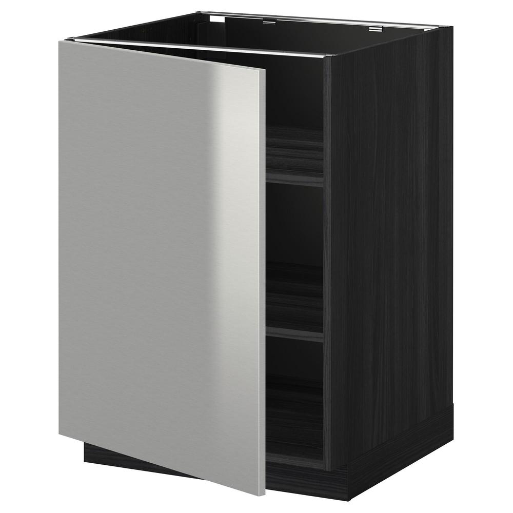 МЕТОД Напольный шкаф с полками - под дерево черный, Гревста нержавеющ сталь, 60x60 см