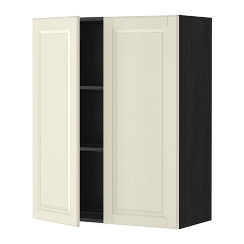 МЕТОД Навесной шкаф с полками/2дверцы - под дерево черный, Будбин белый с оттенком, 80x100 см