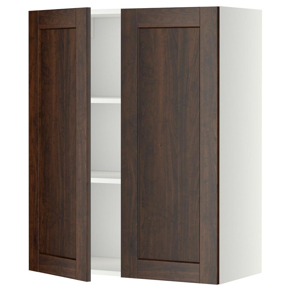МЕТОД Навесной шкаф с полками/2дверцы - белый, Эдсерум под дерево коричневый, 80x100 см
