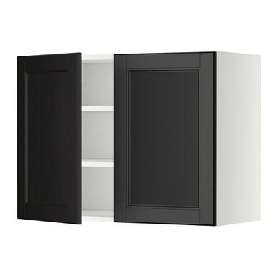 МЕТОД Навесной шкаф с полками/2дверцы - 80x60 см, Лаксарби черно-коричневый, белый