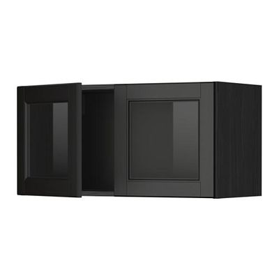 МЕТОД Навесной шкаф с 2 стеклянн дверями - под дерево черный, Лаксарби черно-коричневый