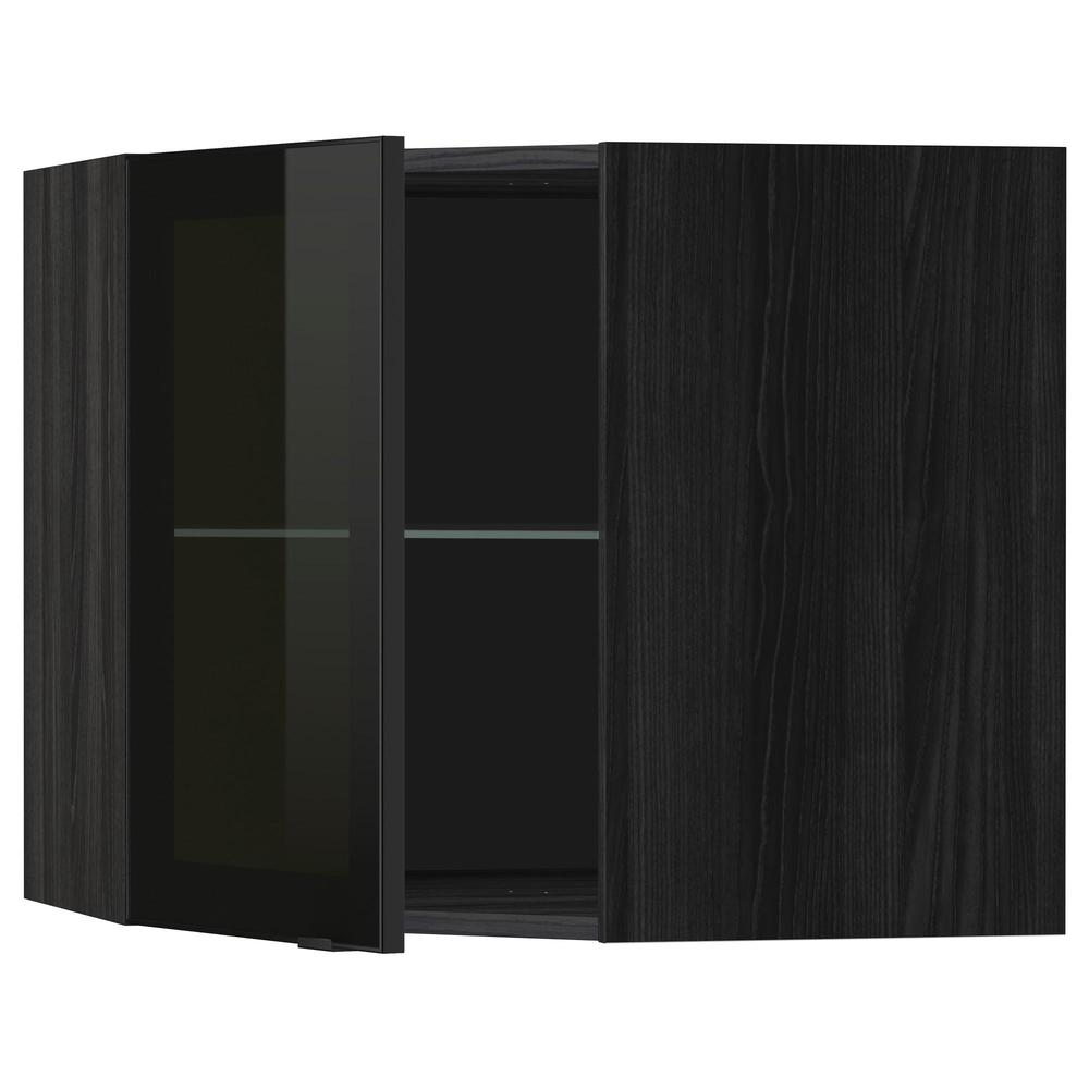 МЕТОД Углов навесн шк с полками/сткл дв - под дерево черный, Ютис дымчатое стекло/черный, 68x60 см