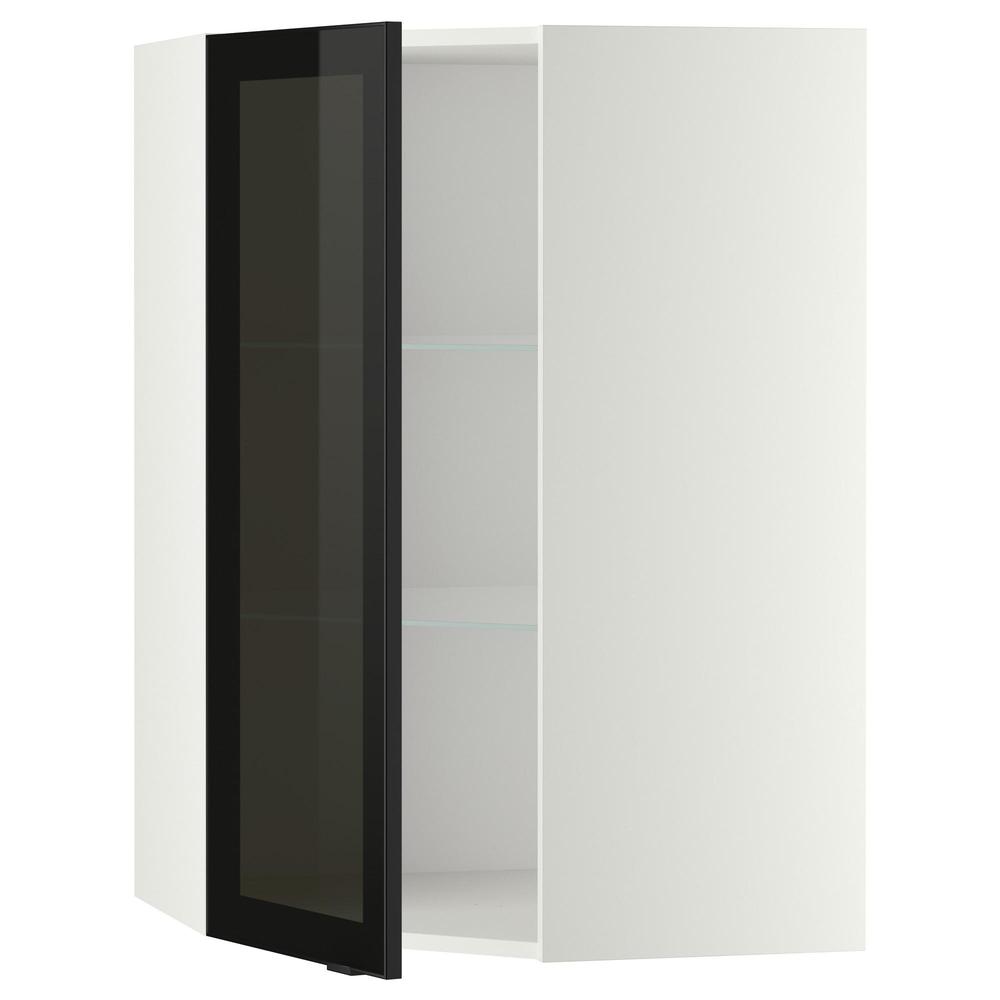 МЕТОД Углов навесн шк с полками/сткл дв - белый, Ютис дымчатое стекло/черный, 68x100 см