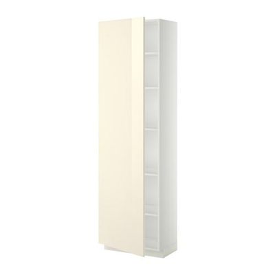 МЕТОД Высок шкаф с полками - 60x37x200 см, Рингульт глянцевый кремовый, белый