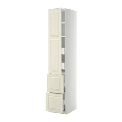 МЕТОД / ФОРВАРА Высокий шкаф+полки/4 ящика/2дверцы - 40x60x220 см, Будбин белый с оттенком, белый