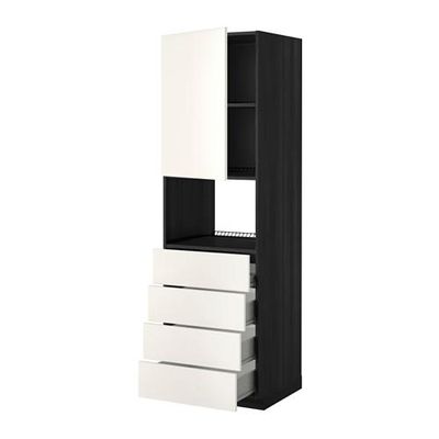 МЕТОД / ФОРВАРА Высок шкаф д/духовки/дверца/4ящика - 60x60x200 см, Веддинге белый, под дерево черный