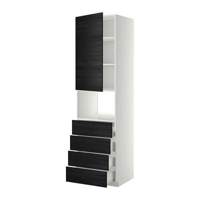 МЕТОД / ФОРВАРА Высок шкаф д/духовки/дверца/4ящика - 60x60x220 см, Тингсрид под дерево черный, белый