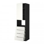 МЕТОД Высокий шкаф д/холодильника/2дверцы - под дерево черный, Хэггеби белый, 60x60x200 см
