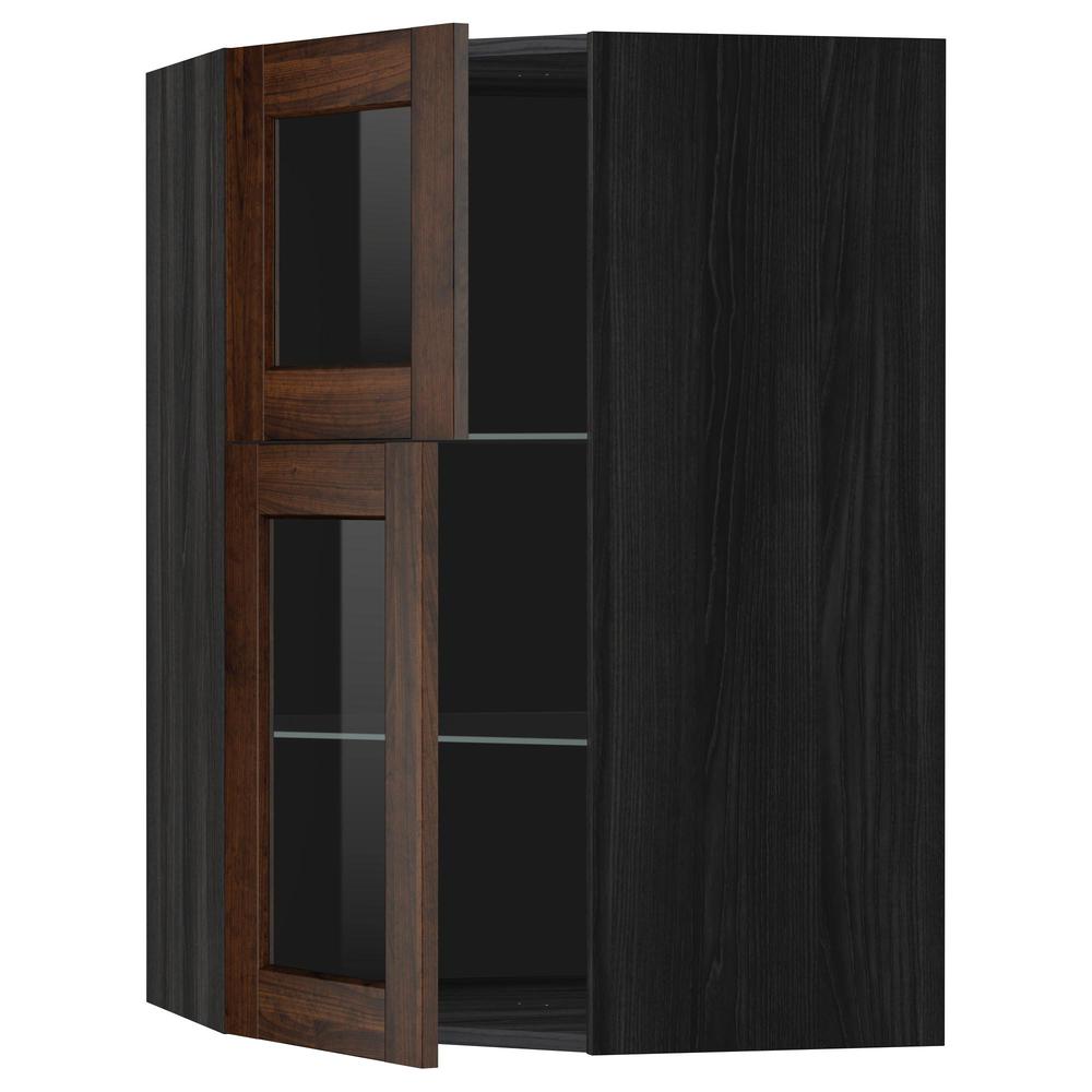 МЕТОД Углов навесной шкаф+полки/2 сткл дв - под дерево черный, Эдсерум под дерево коричневый