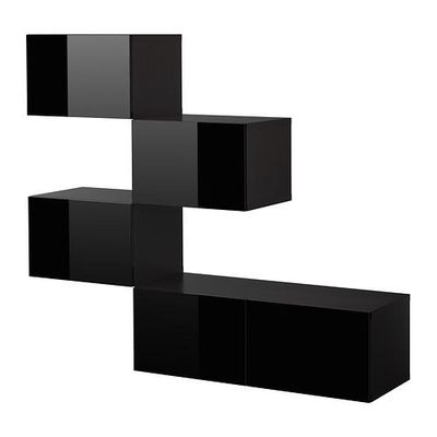 БЕСТО Комбинация для хранения с дверцами - черно-коричневый/глянцевый черный