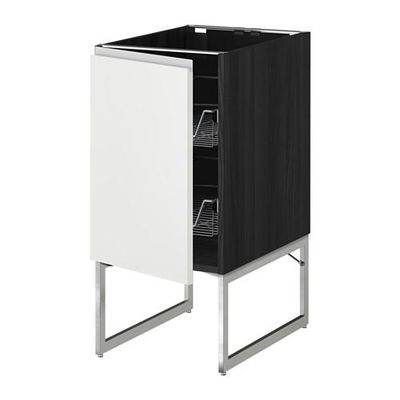 МЕТОД Напольный шкаф с проволочн ящиками - 40x60x60 см, Нодста белый/алюминий, под дерево черный