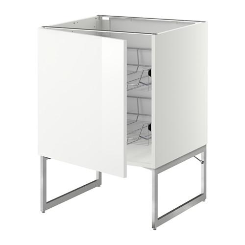 МЕТОД Напольный шкаф с проволочн ящиками - белый, Рингульт глянцевый белый, 60x60x60 см