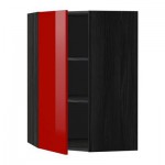 МЕТОД Угловой навесной шкаф с полками - 68x60 см, Рингульт глянцевый красный, под дерево черный