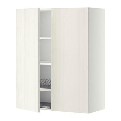 МЕТОД Навесной шкаф с посуд суш/2 дврц - 80x100 см, Росдаль белый ясень, белый