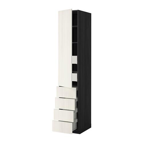 МЕТОД / ФОРВАРА Выс шкаф с плк/6 ящк/ дверц/4 фрнт - 40x60x220 см, Росдаль белый ясень, под дерево черный