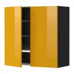 МЕТОД Навесной шкаф с посуд суш/2 дврц - 80x100 см, Ерста глянцевый желтый, под дерево черный