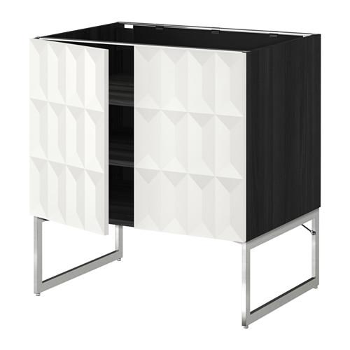 МЕТОД Напол шкаф с полками/2двери - под дерево черный, Гэррестад белый, 80x60x60 см