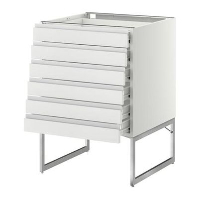 МЕТОД / ФОРВАРА Напольн шкаф 6фронт пнл/6 низ ящ - 60x60x60 см, Нодста белый/алюминий, белый