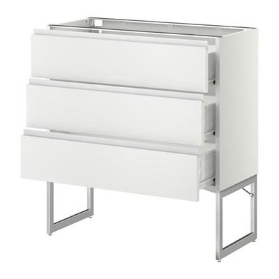 МЕТОД / ФОРВАРА Нплн шк 3 фрнт/3 средн ящика - 80x37x60 см, Нодста белый/алюминий, белый