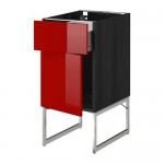 МЕТОД / ФОРВАРА Напольный шкаф с ящиком/дверью - 60x37x60 см, Рингульт глянцевый красный, под дерево черный