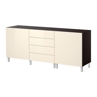 БЕСТО Комб для хран с дверц/ящ - черно-коричневый/Тофта глянцевый/кремовый