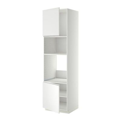 МЕТОД Выс шкаф д/духовки/СВЧ/2 дв/полки - 60x60x220 см, Нодста белый/алюминий, белый