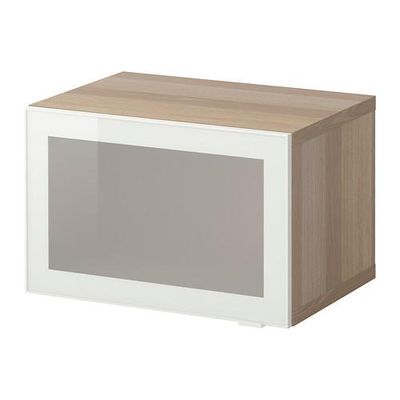 БЕСТО Стеллаж со стеклянн дверью - под беленый дуб/Глассвик белый/матовое стекло