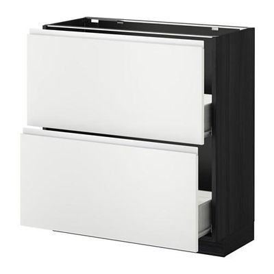 МЕТОД / ФОРВАРА Напольный шкаф с 2 ящиками - 80x37 см, Нодста белый/алюминий, под дерево черный