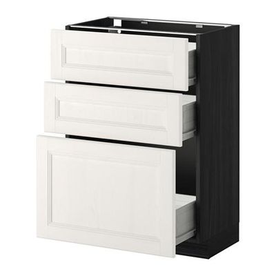 МЕТОД / ФОРВАРА Напольный шкаф с 3 ящиками - 60x37 см, Лаксарби белый, под дерево черный