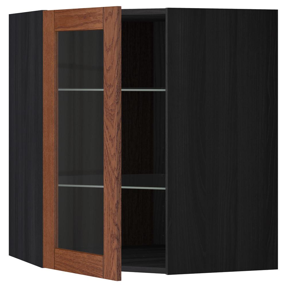 МЕТОД Углов навесн шк с полками/сткл дв - под дерево черный, Филипстад коричневый, 68x80 см
