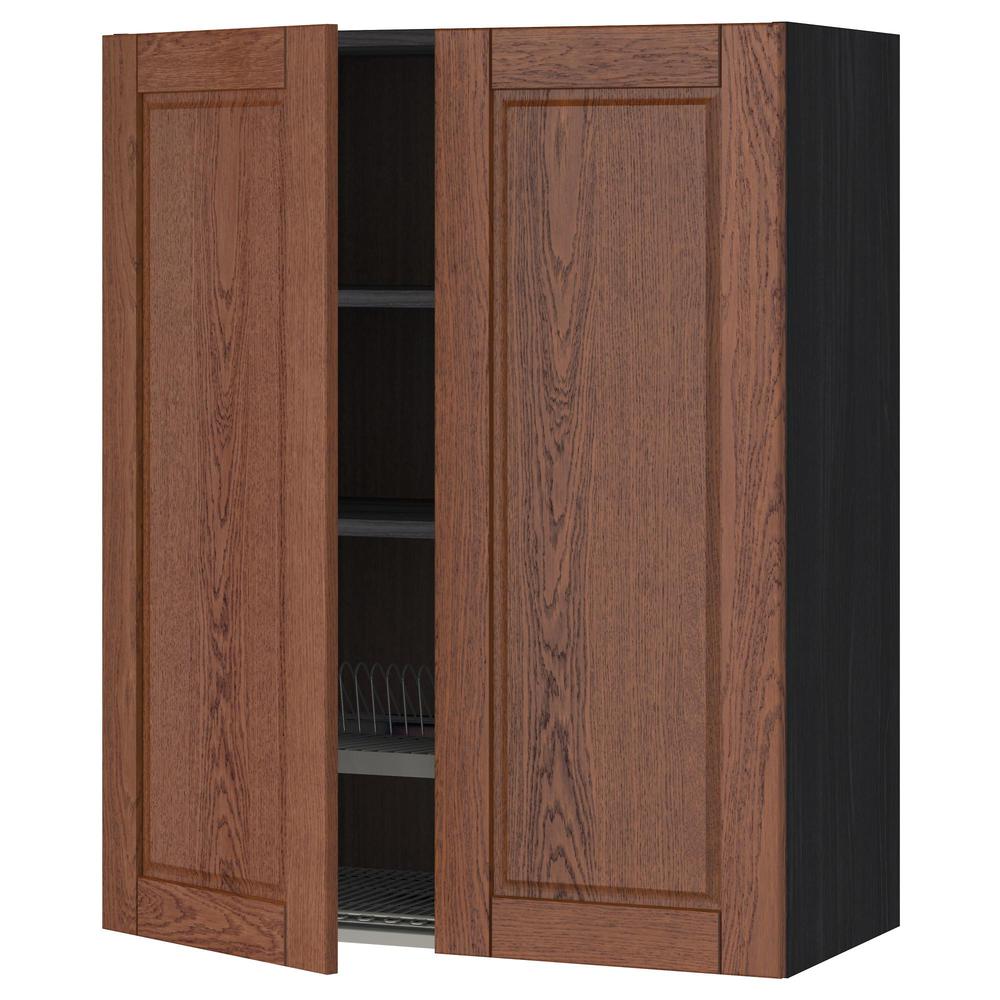 МЕТОД Навесной шкаф с посуд суш/2 дврц - под дерево черный, Филипстад коричневый, 80x100 см