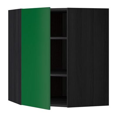 МЕТОД Угловой навесной шкаф с полками - 68x80 см, Флэди зеленый, под дерево черный