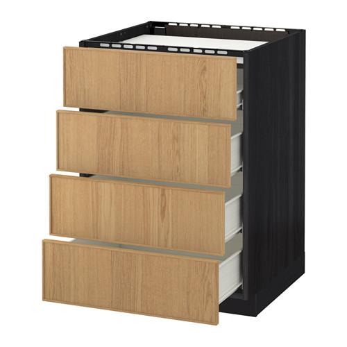 МЕТОД / ФОРВАРА Напольн шкаф/4фронт пнл/4ящика - 60x60 см, Экестад дуб, под дерево черный