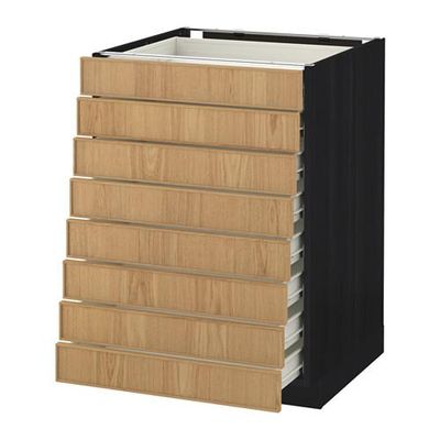 МЕТОД / ФОРВАРА Наполн шкаф 8 фронт/8 низк ящиков - 60x60 см, Экестад дуб, под дерево черный
