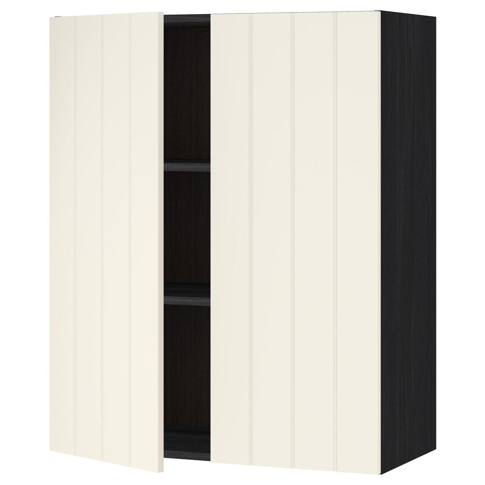 МЕТОД Навесной шкаф с полками/2дверцы - под дерево черный, Хитарп белый с оттенком, 80x100 см