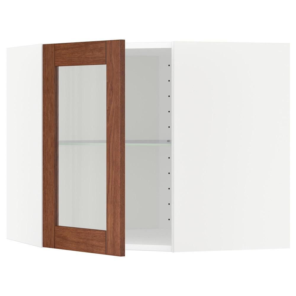 МЕТОД Углов навесн шк с полками/сткл дв - белый, Филипстад коричневый, 68x60 см