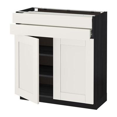 МЕТОД / ФОРВАРА Напольный шкаф/2дверцы/2ящика - Сэведаль белый, под дерево черный