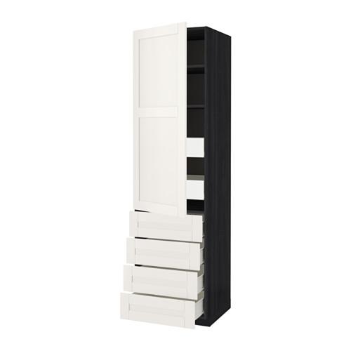 МЕТОД / ФОРВАРА Выс шкаф с плк/6 ящк/ дверц/4 фрнт - 60x60x220 см, Сэведаль белый, под дерево черный