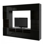 БЕСТО Шкаф для ТВ, комбин/стеклян дверцы - черно-коричневый/Сельсвикен глянцевый/черный прозрачное стекло, направляющие ящика, плавно закр