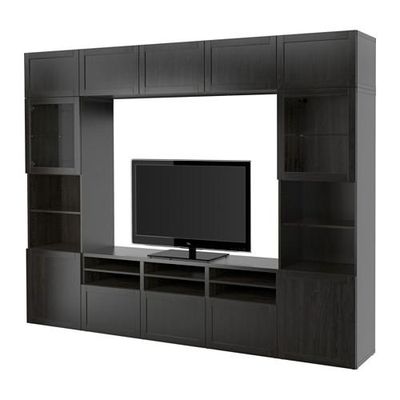 БЕСТО Шкаф для ТВ, комбин/стеклян дверцы - Ханвикен/Синдвик черно-коричневый прозрачное стекло, направляющие ящика, плавно закр