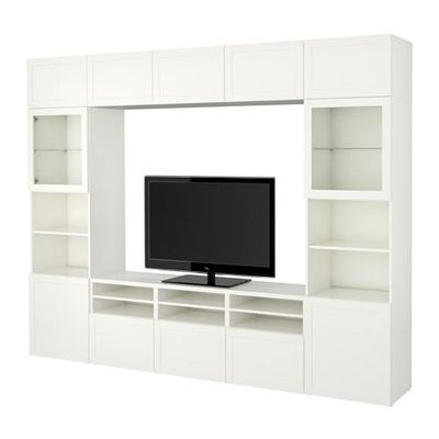 БЕСТО Шкаф для ТВ, комбин/стеклян дверцы - Ханвикен/Синдвик белый прозрачное стекло, направляющие ящика, плавно закр