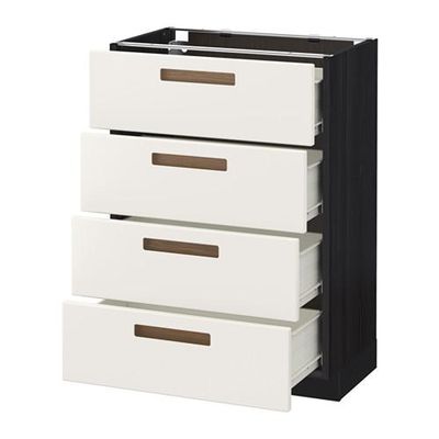 МЕТОД / ФОРВАРА Напольн шкаф 4 фронт панели/4 ящика - 60x37 см, Мэрста белый, под дерево черный