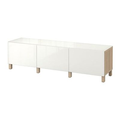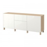 БЕСТО Комбинация для хранения с ящиками - направляющие ящика,нажимные, под беленый дуб/Сельсвикен глянцевый/белый