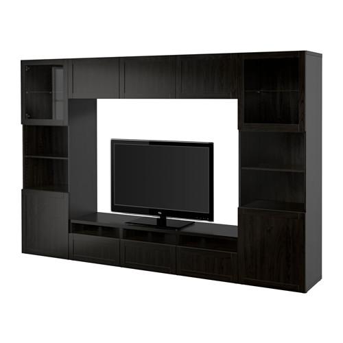 БЕСТО Шкаф для ТВ, комбин/стеклян дверцы - Ханвикен/Синдвик черно-коричневый прозрачное стекло, направляющие ящика, плавно закр