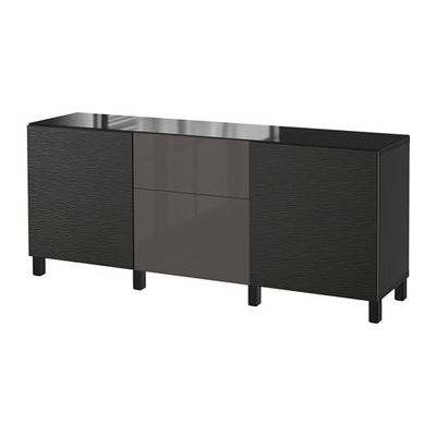 БЕСТО Комб для хран с дверц/ящ - Лаксвикен черный/Сельсвикен глянцевый/серый, направляющие ящика, плавно закр