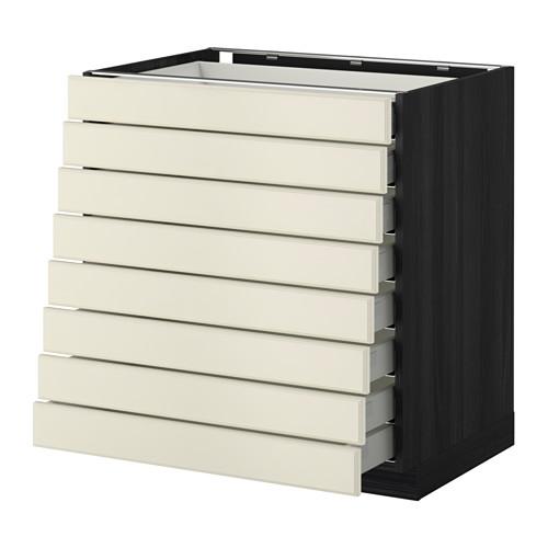 МЕТОД / МАКСИМЕРА Наполн шкаф 8 фронт/8 низк ящиков - под дерево черный, Будбин белый с оттенком, 80x60 см