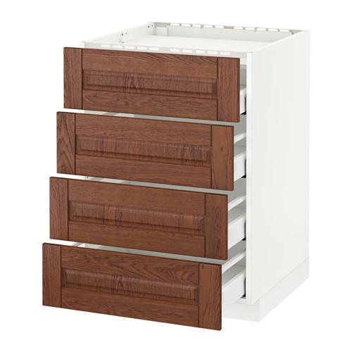 МЕТОД / МАКСИМЕРА Напольн шкаф/4фронт пнл/4ящика - белый, Филипстад коричневый, 60x60 см