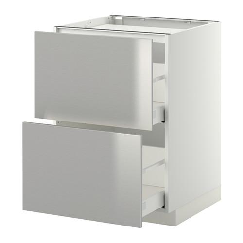 МЕТОД / МАКСИМЕРА Напольн шкаф/2фронт пнл/3ящика - белый, Гревста нержавеющ сталь, 60x60 см